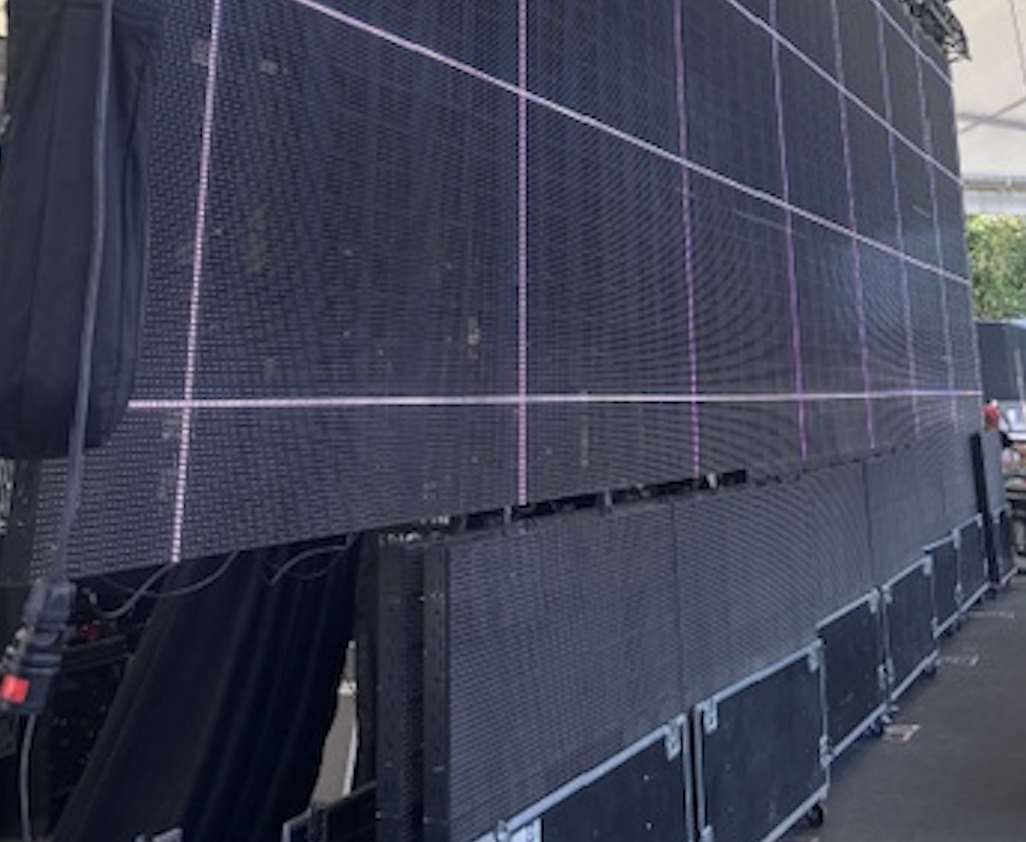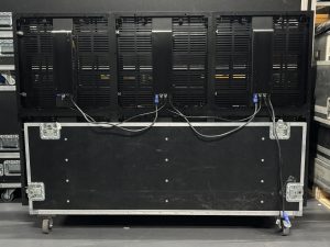 - LED Videopanel 640 x 640 mm, IP 65, 16mm Pixelpitch, 40*40 pix, 38% transparent, Software LINSN, Gewicht nur 8,5 kg, über 5.000 nit, hell genug um bei direktem Sonnenlicht ein perfektes Bild zu liefern, aber auch bestes Bild bei nur noch 5% Helligkeit. Sehr robustes System. Keine Schäden.