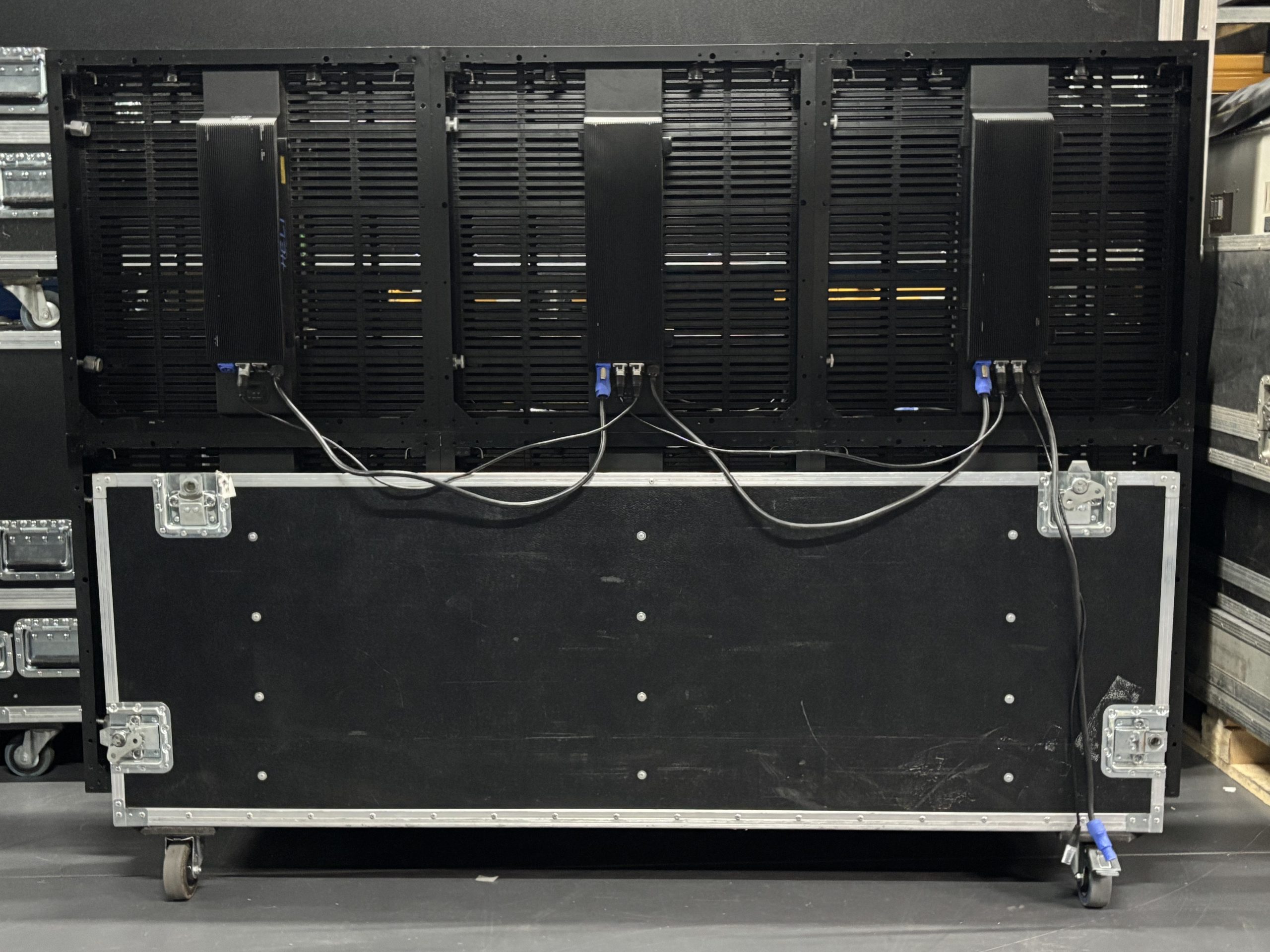 Der Preis ist inkl.aller nötigen Strom- und Datenkabel, aller nötigen Riggingbars, allen Flightcases, Zuleitungs- und Rückleitungs-Kabel, sowie 4 Controllern.